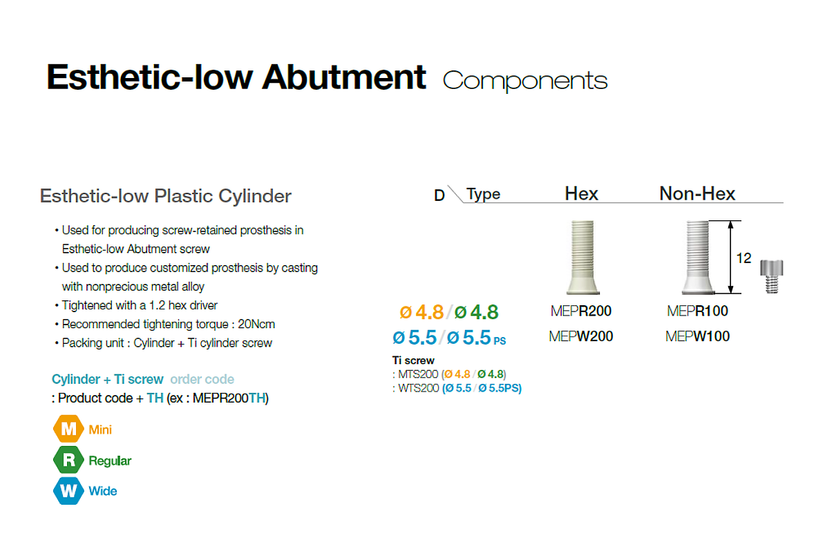 US Esthetic-low Plastic Cylinder with Screw (Non - Hex)
